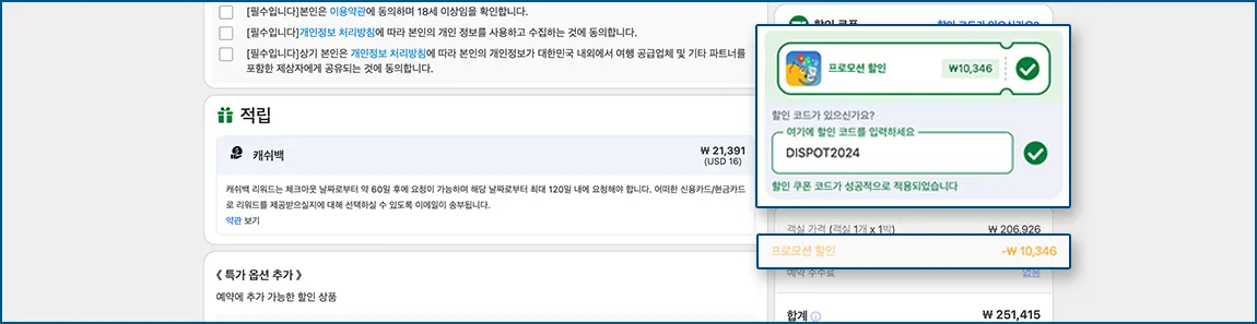 프로모션코드 적용이 안된다면 아고다 할인 전용 링크를 통해 다시 접속해보세요.